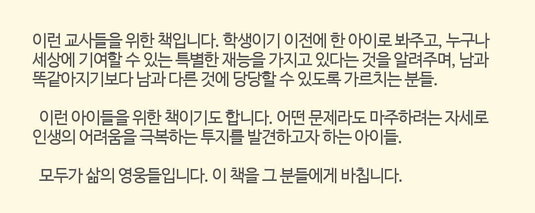 어떤 문제라도 마주하는 자세로 인생의 어려움을 극복하는 투지(grit 그릿)를 발견하고자 하는 아이들이 되도록 강조하고 있는 책이다.