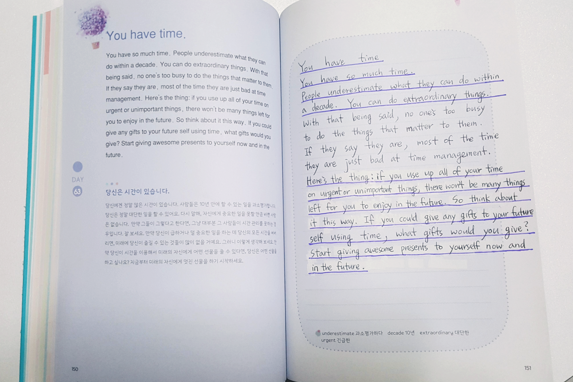 만약 당신이 시간을 이용해서 미래의 자신에게 어떤 선물을 줄 수 있다면, 당신은 어떤 선물을 하고 싶나요?